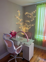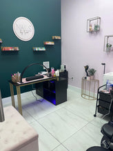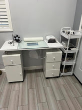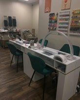 This nail desk is designed for efficiency and client comfort. Organized storage space, ergonomic design and built-in dust collector, what is ideal for nail technicians who value functionality and style.