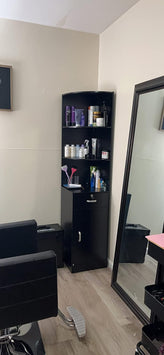 Arc upon design is suitable for corner storage use. This corner salon station will be a great addition to any salon.