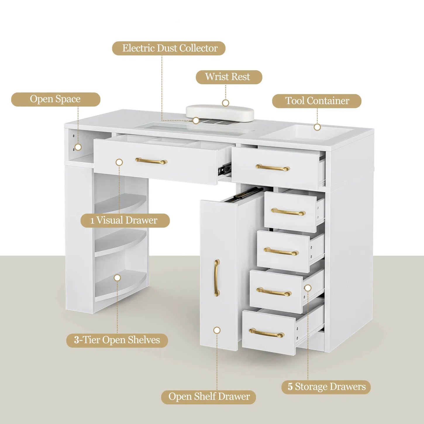 Paddie Nail Desk, built-in dust collector, multi-drawers