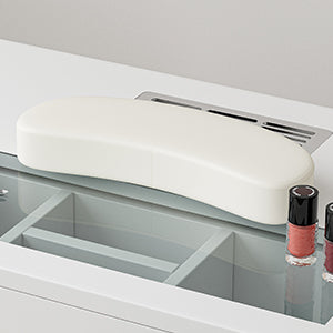 The smart design of this professional nail desk allows for maximum storage, practical functionality, and a clutter-free environment without compromising any aesthetics.