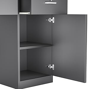 The salon styling station has 2 mid drawers and 1 large bottom cabinet to keep your space neat and tidy.