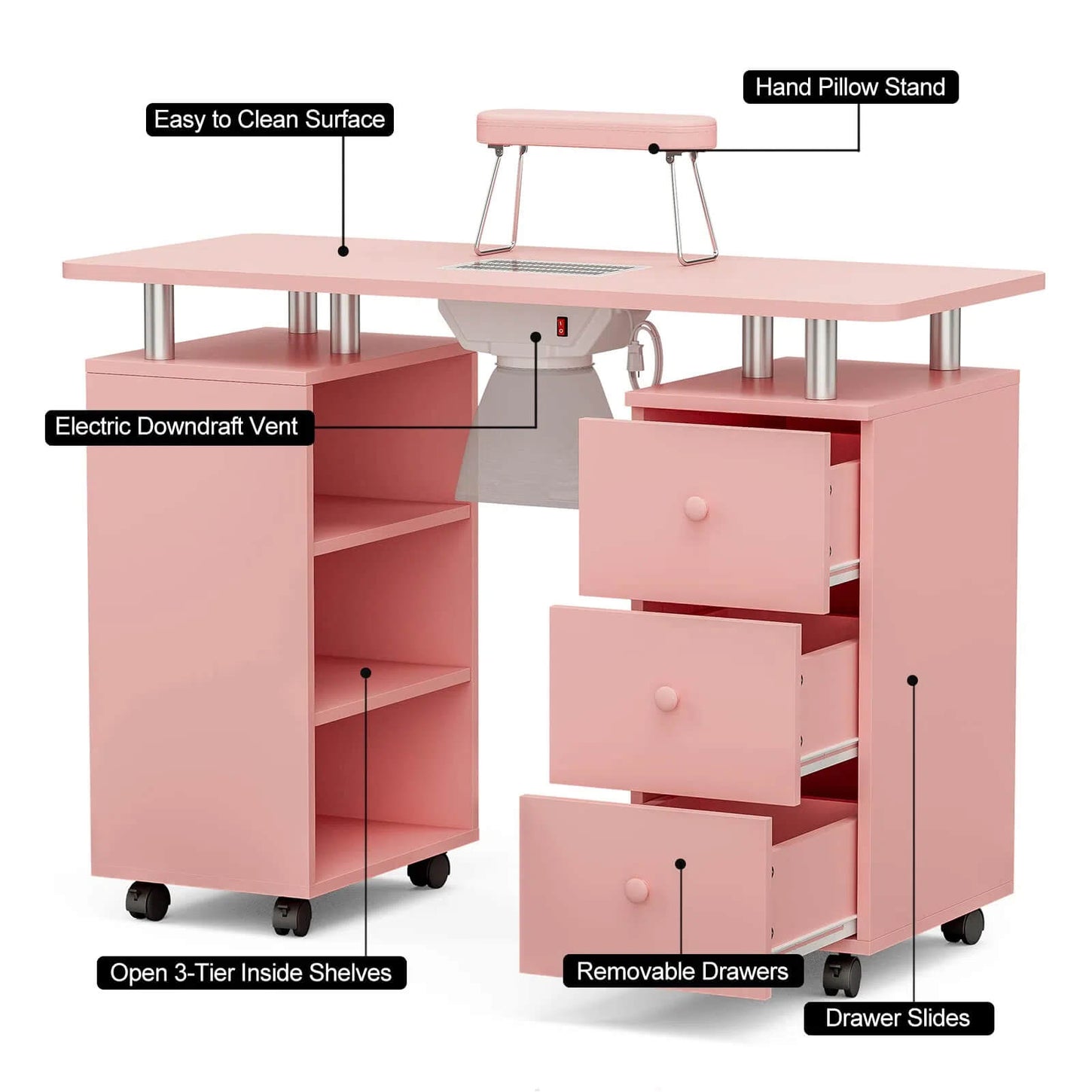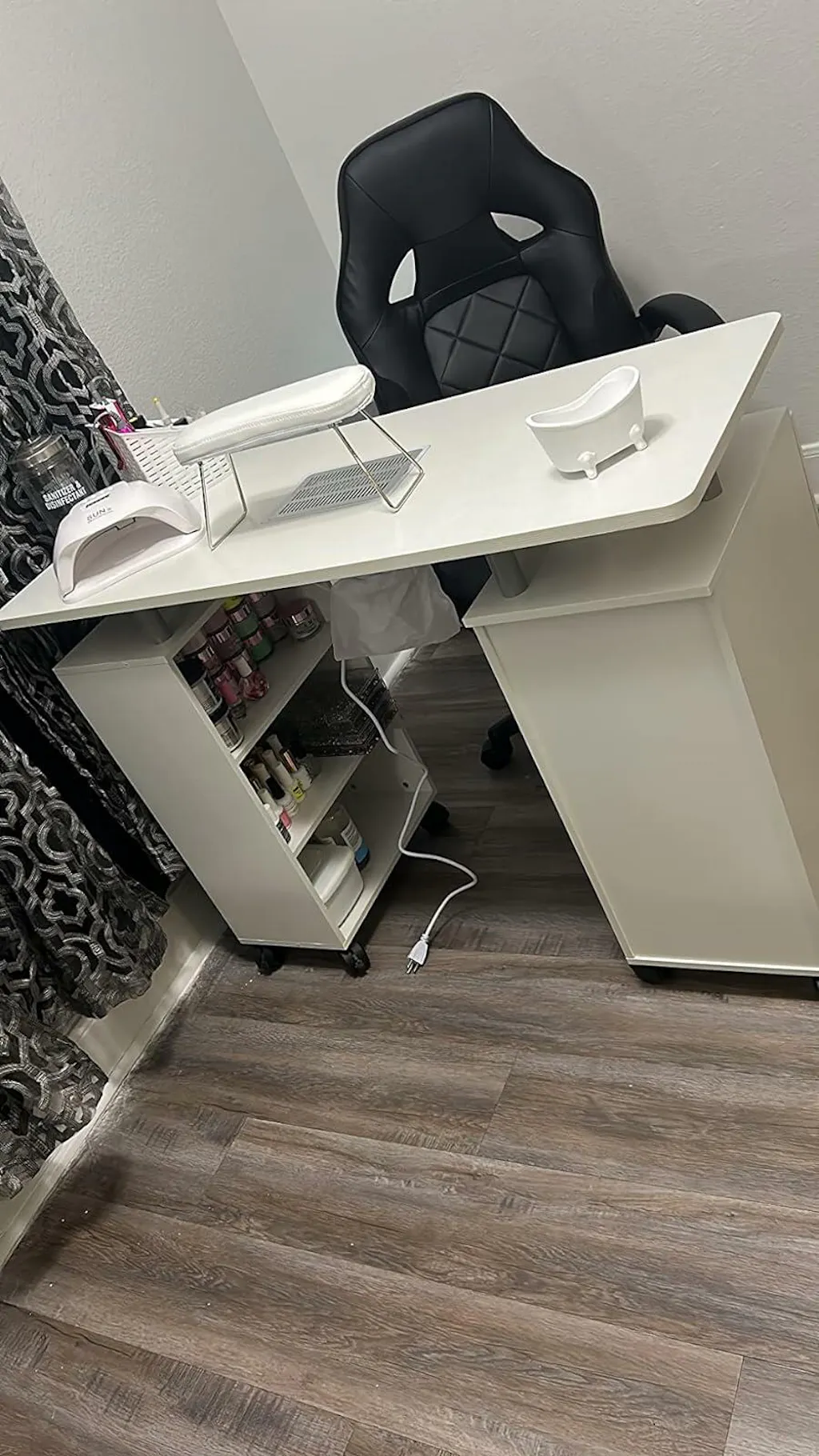 Paddie Manicure Table with Storage, dust collector