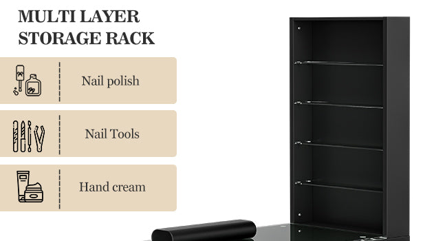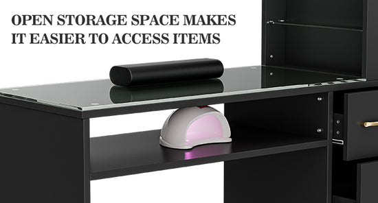 - Multi-layer drawers and open shelves meet the needs for organization of nail tools.