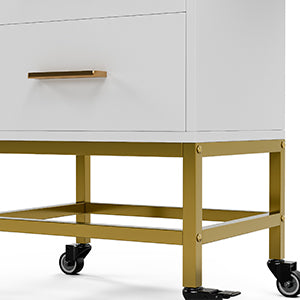 This is a professional salon cart on wheels that has a very sturdy metal frame.